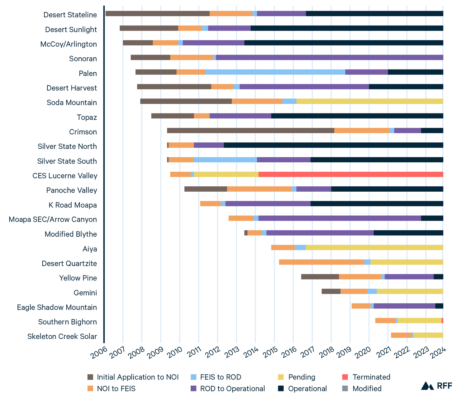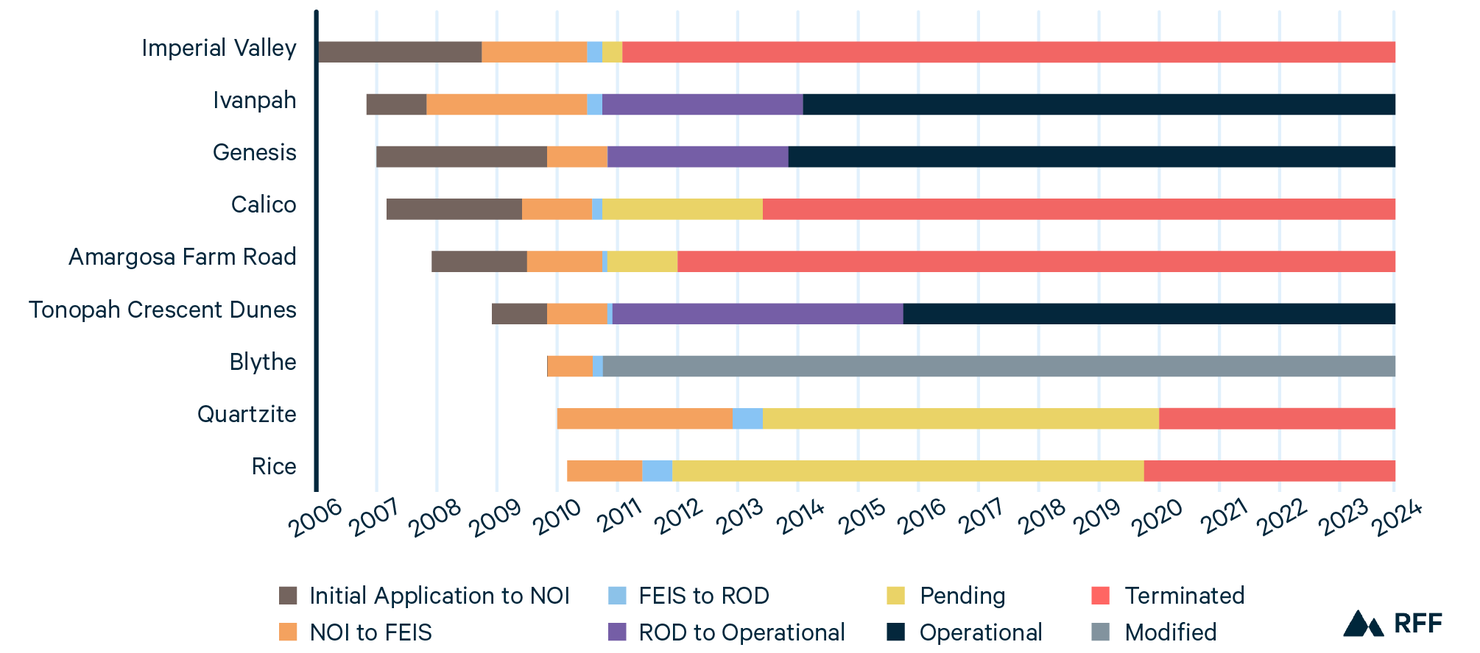 In analyzing the time from initial action to date of operation, we observe other significant periods of delay for project developers. For the subset of 16 solar projects that completed EIS review and for which we have an initial action date, none completed construction and commenced operation within five years of the date of initial action; 4 of these projects required more than eight years to reach operational status.
